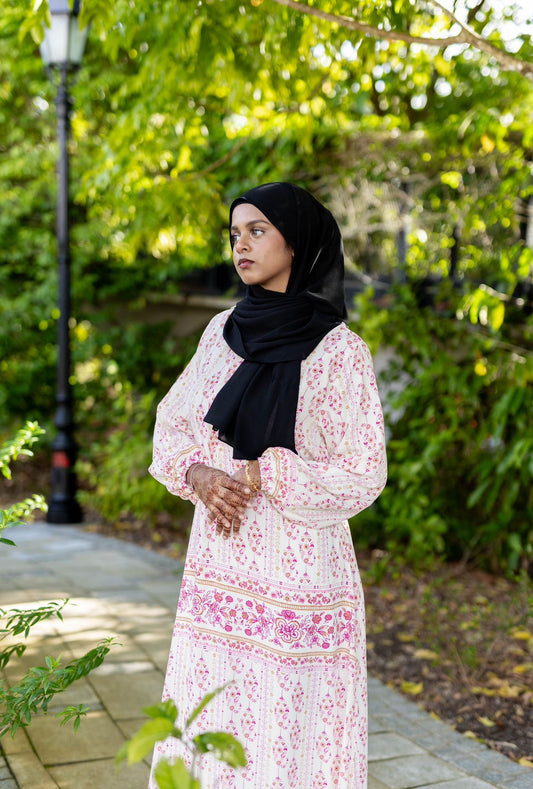 Designed to embody grace, modesty, and effortless elegance, the Etherea Dress flows beautifully with every step. Crafted from premium chiffon with a soft cooling inner lining, it keeps you comfortable throughout long iftars, taraweeh nights, and meaningful gatherings.